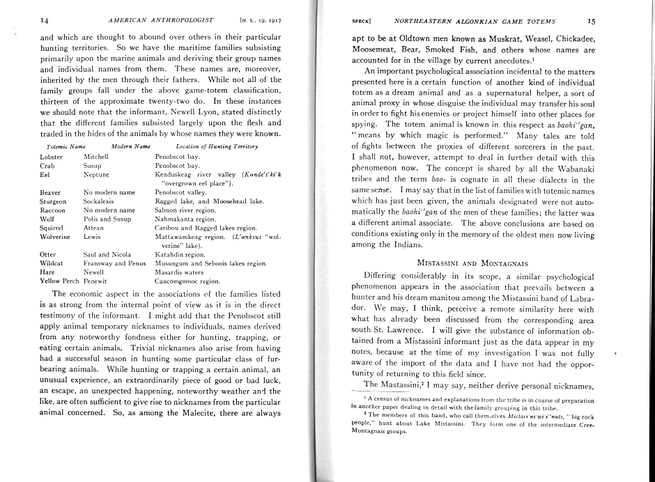 Game Totems among the Northeastern Algonkians: