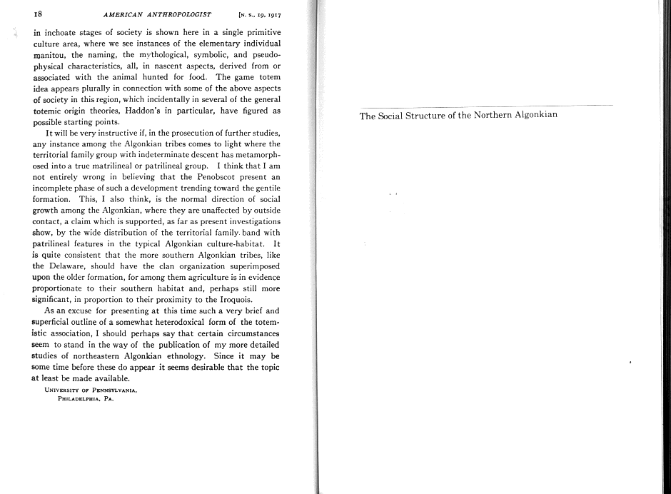 The Social Structure of the Northern Algonkians: